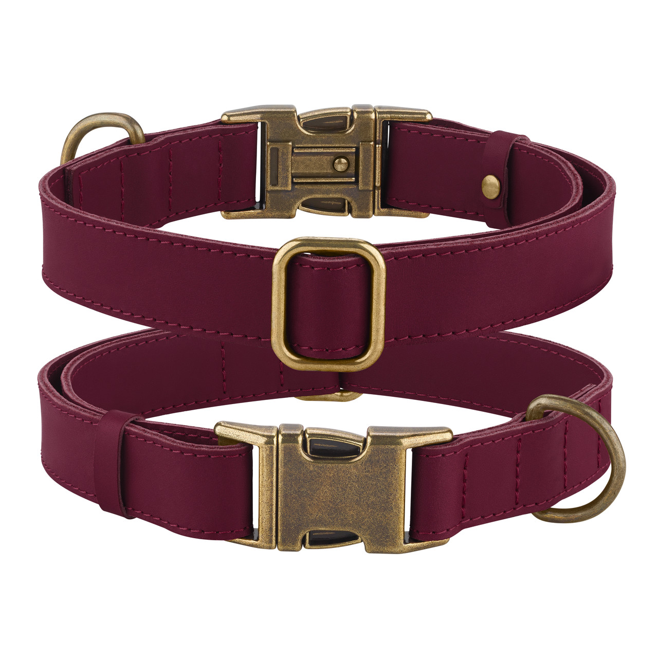 Нашийник для собак шкіряний BronzeDog Antiq бордовий S